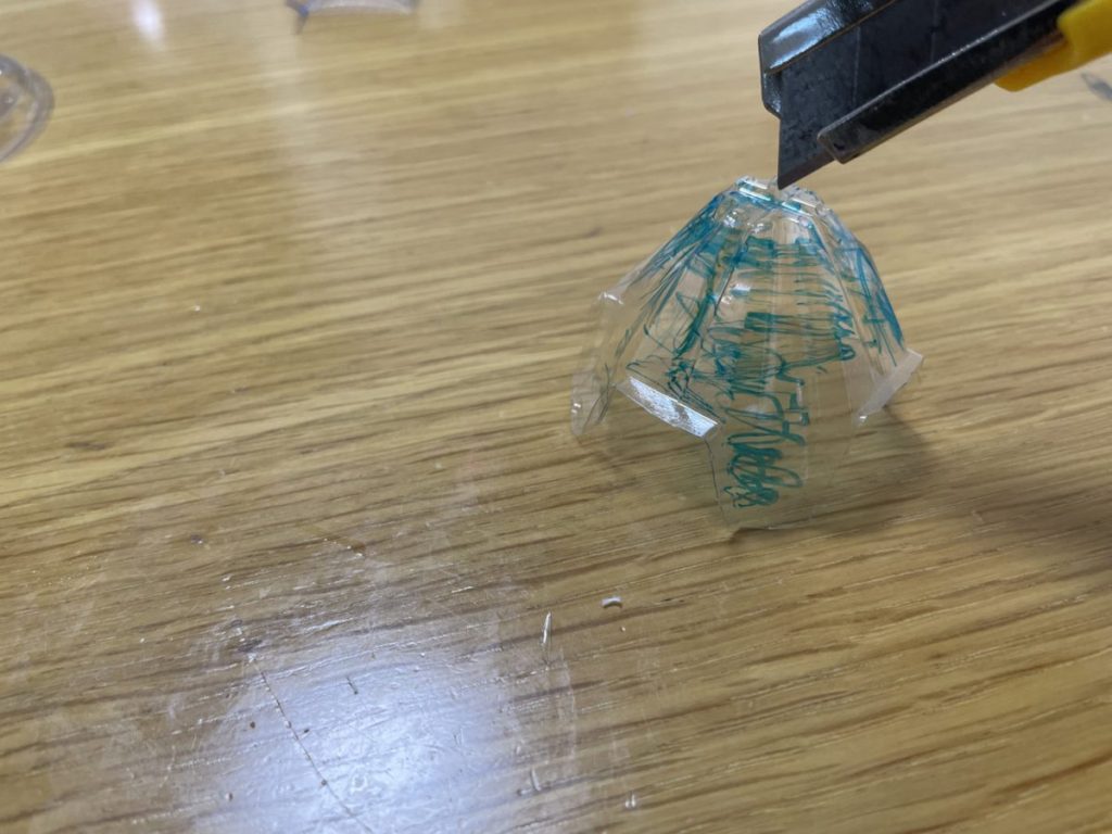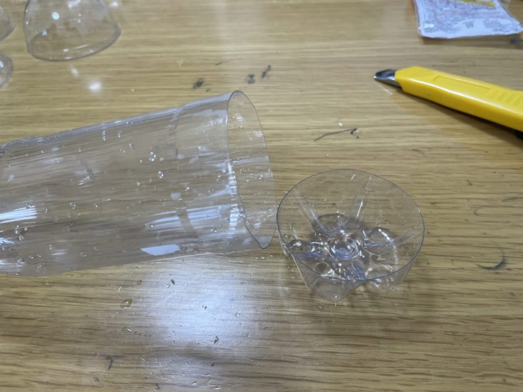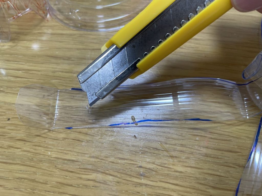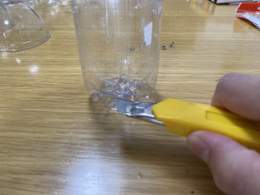 手順① ペットボトルの下をカッターで切ります。
