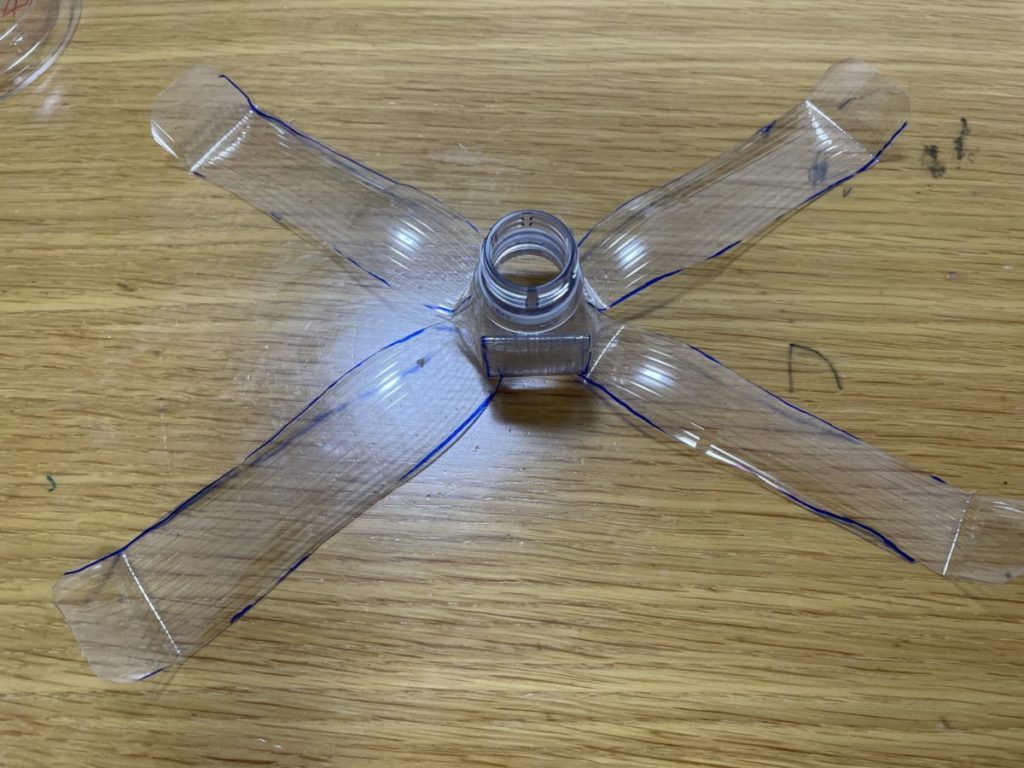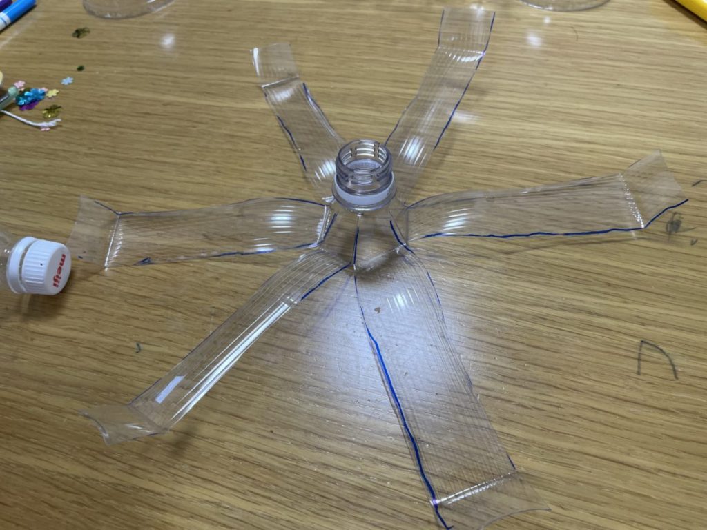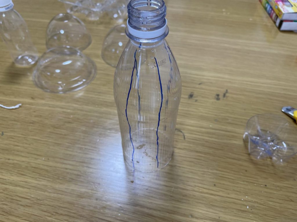 ペットボトルを6等分にするためにまずは適当に線を入れます。