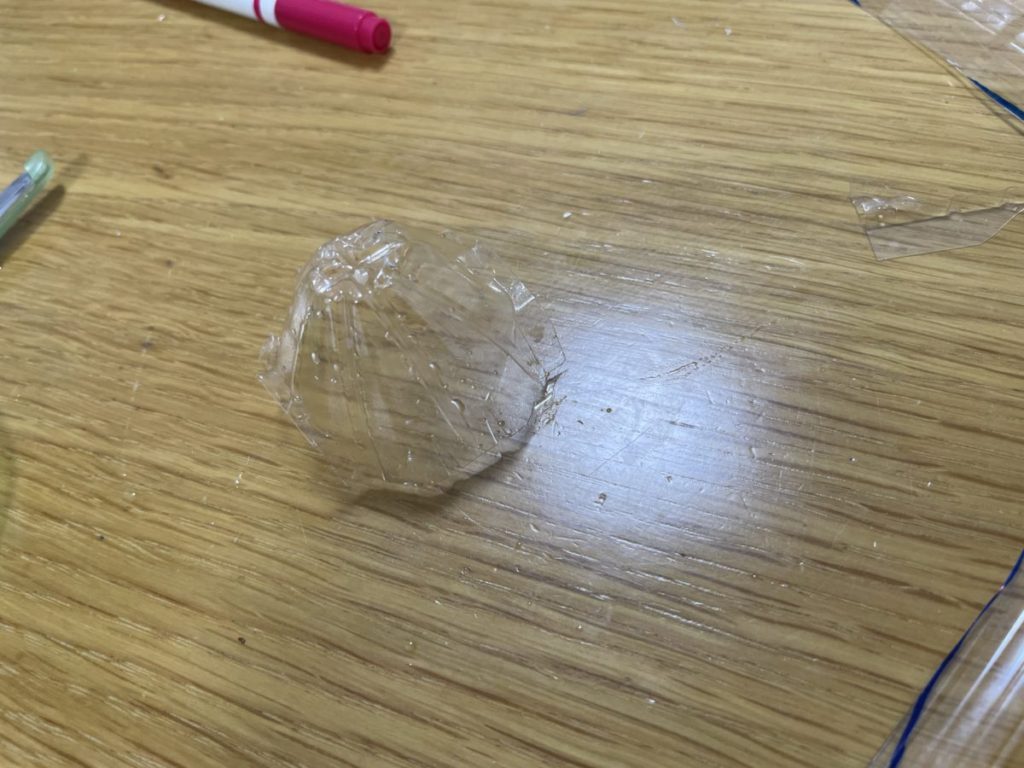 ペットボトルの蓋の内側をセロハンテープで止めます。