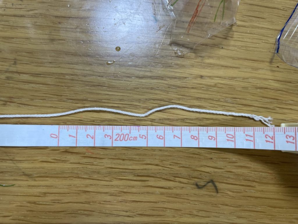 糸を通したらペットボトルの蓋の内側をセロハンテープで止めます。