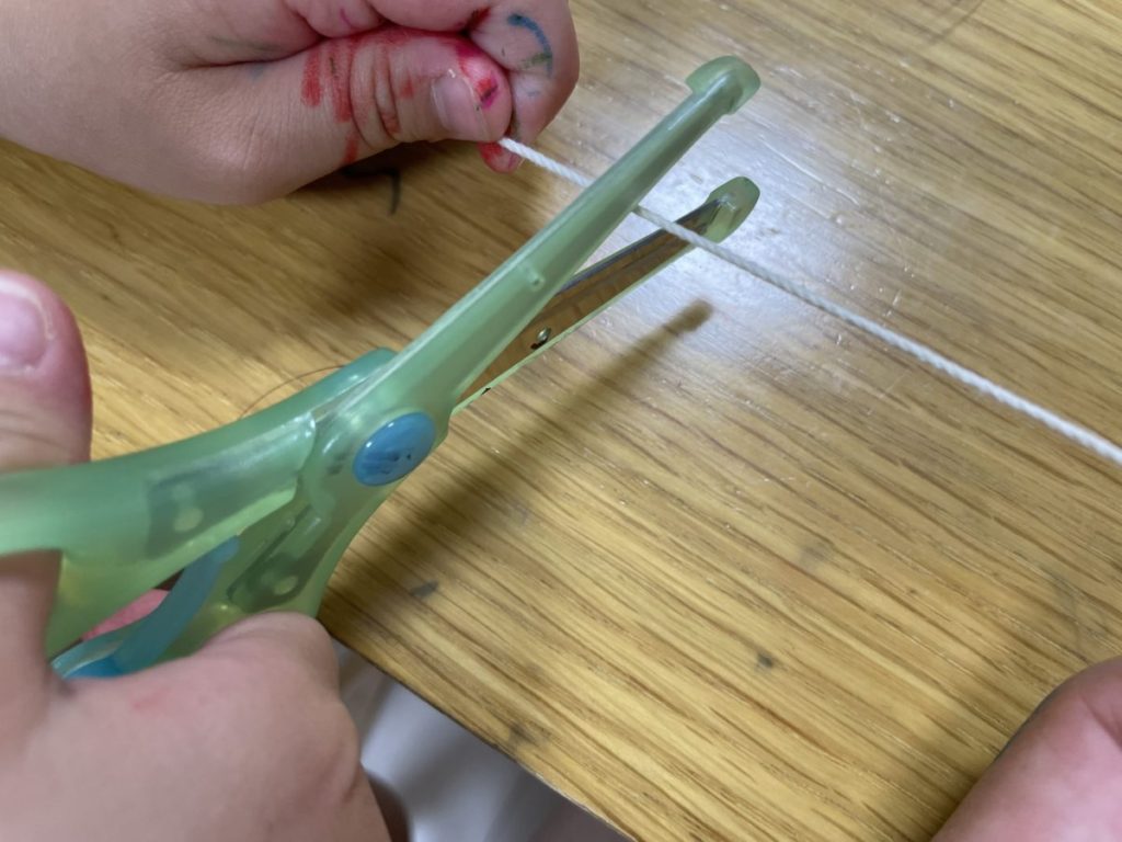 しかし完成して洗濯物バサミにひっかけたときは、感動してゴージャス!喜んでいました。