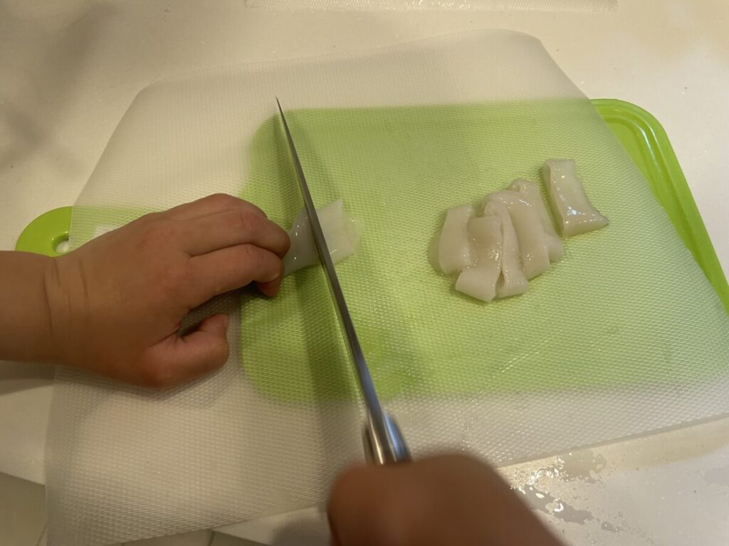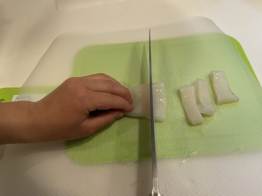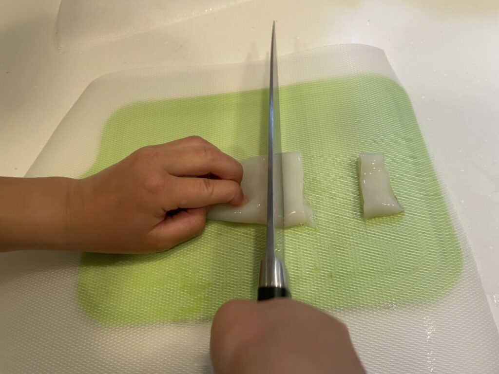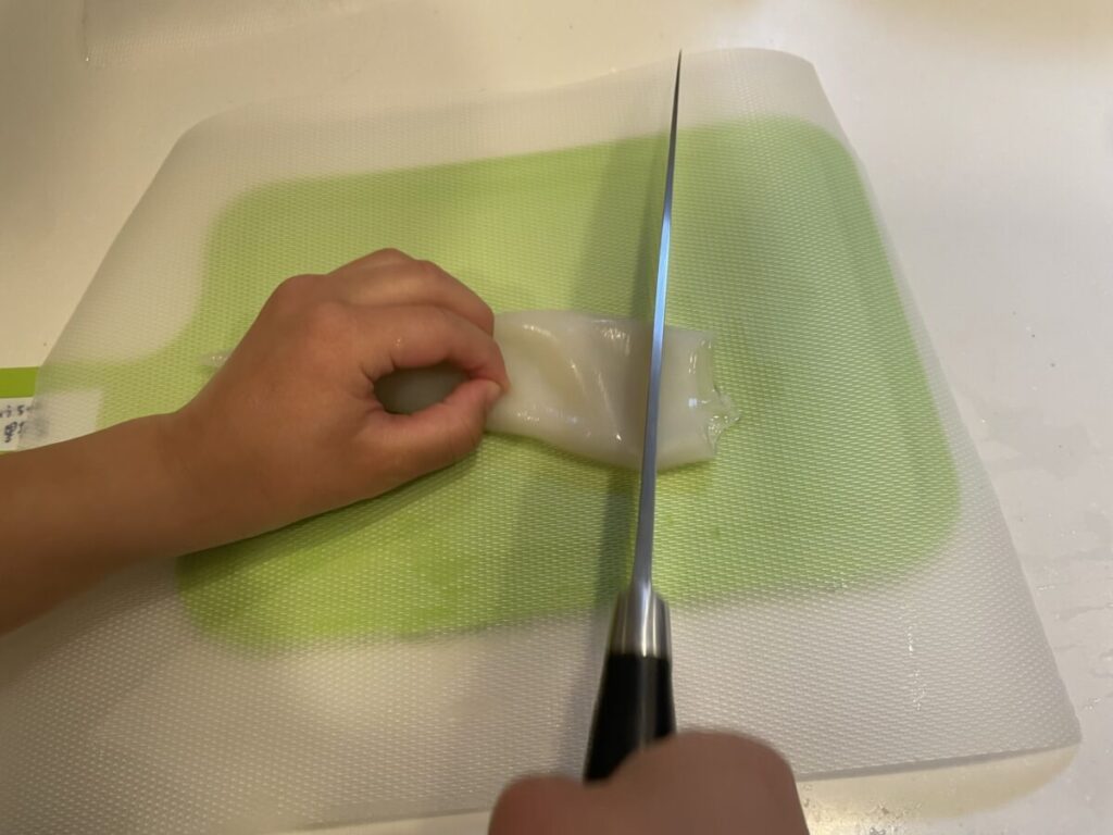 イカ焼きはなぜ輪っかになっているの?子どもの疑問に、イカを捌いて調べました! ⑥イカを切る